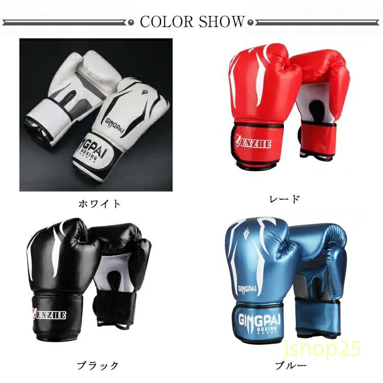 ボクシング グローブ PUレザー パン スポーツ アウトドア 通販 ブラック ブルー レード ホワイト 6オンス 8オンス 10オンス 12オンス