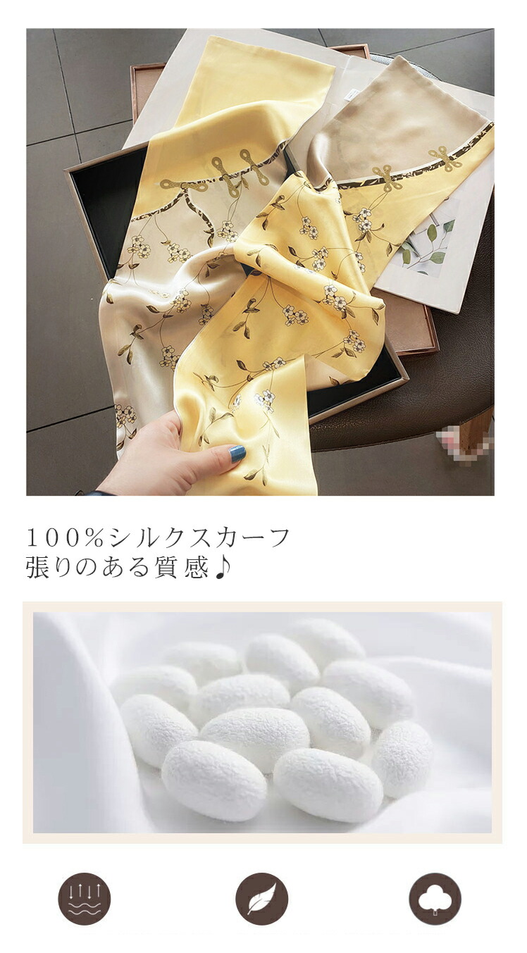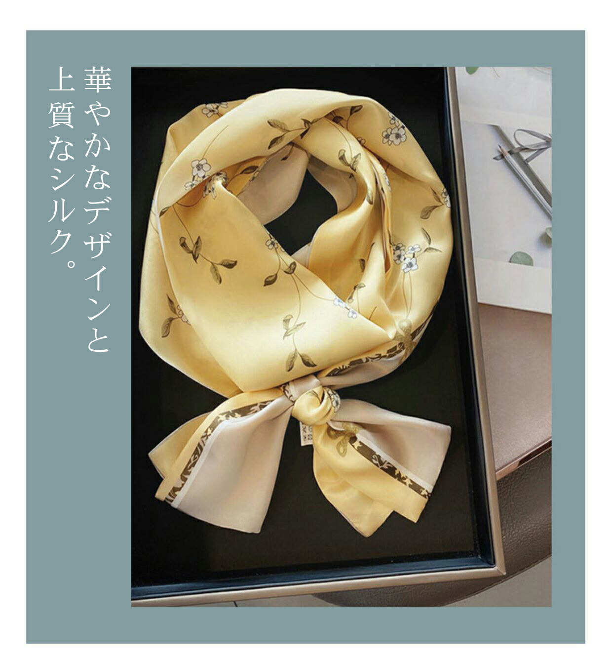 スカーフ シルク 100% 絹 天然素 バッグ 小物 ブランド雑貨 続々登場 イエロー ピンク