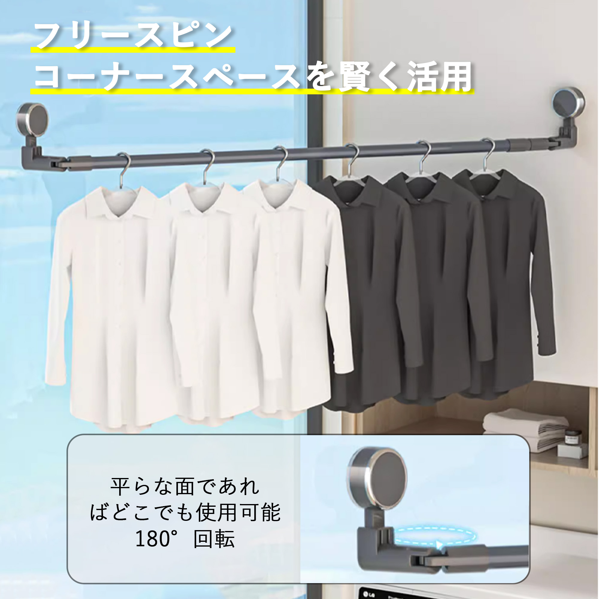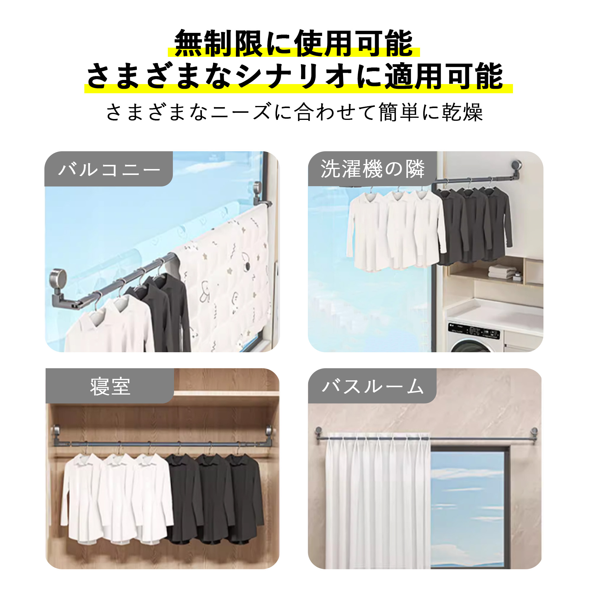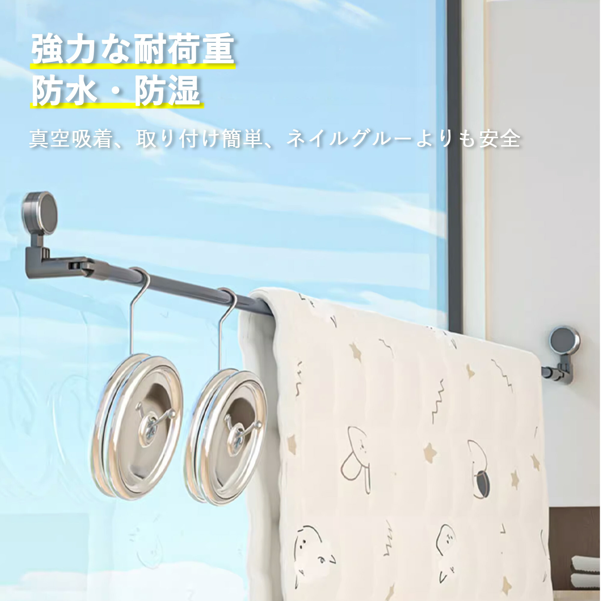 吸盤式 伸縮 窓用 物干し竿 ベランダ 室内干し 洗濯ハンガー 取り付け不要 折りたたみ 洗濯物干し 賃貸対応 コンパクト収納