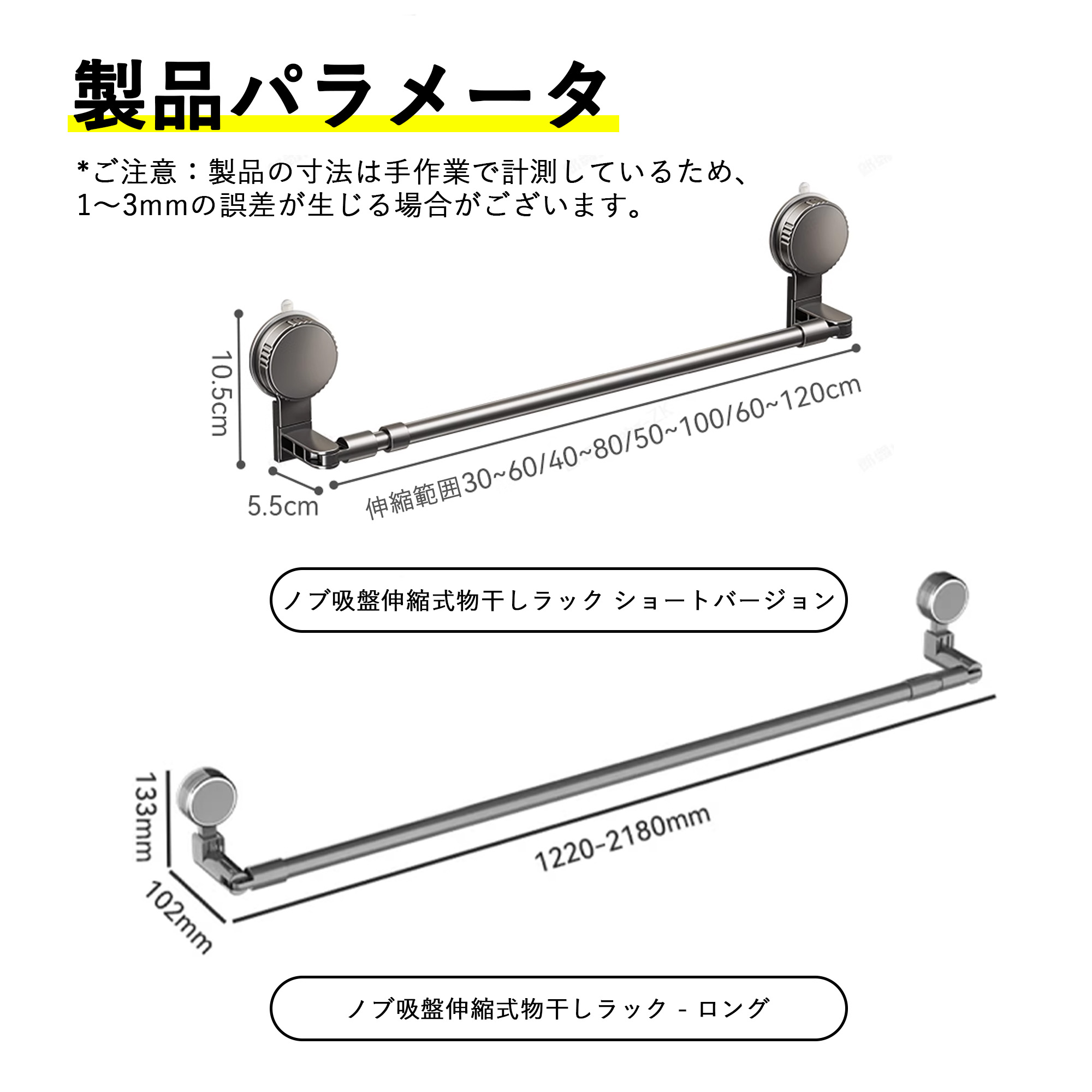 吸盤式 伸縮 窓用 物干し竿 ベランダ 30-60CM 40-80CM 50-100CM 60-120CM 120-220CM