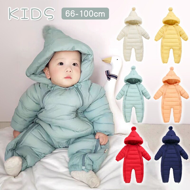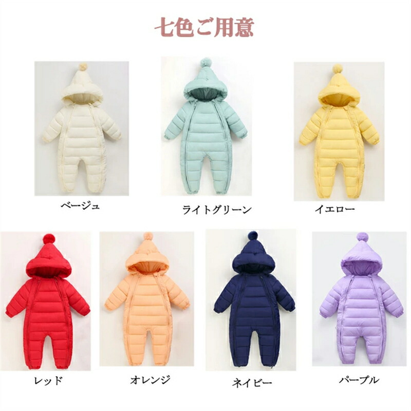 ジャンプスーツ ベビー 雪遊び フード キッズ ベビー マタニティ 特集 ネイビー イエロー グリーン ベージュ オレンジ レッド パープル 73CM 80CM 90CM 100CM