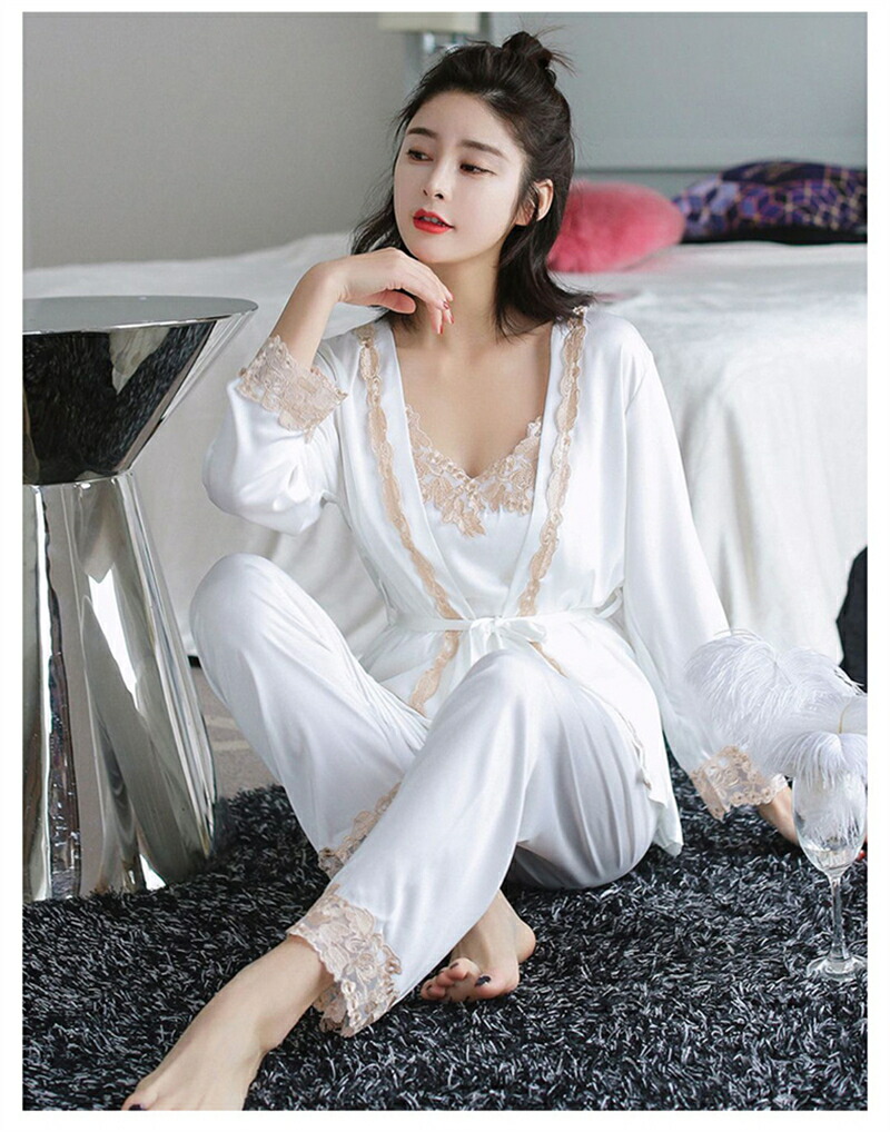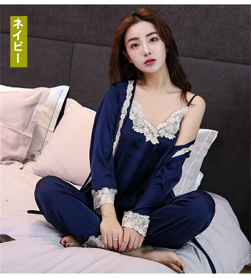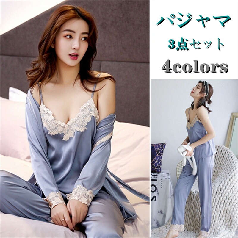 高品質 ルームウェア セクシー シルク レディース ナイトウェア ルームウェア ルームウェア 上下セット 人気 ブルー ネイビー レッド ホワイト M L XL