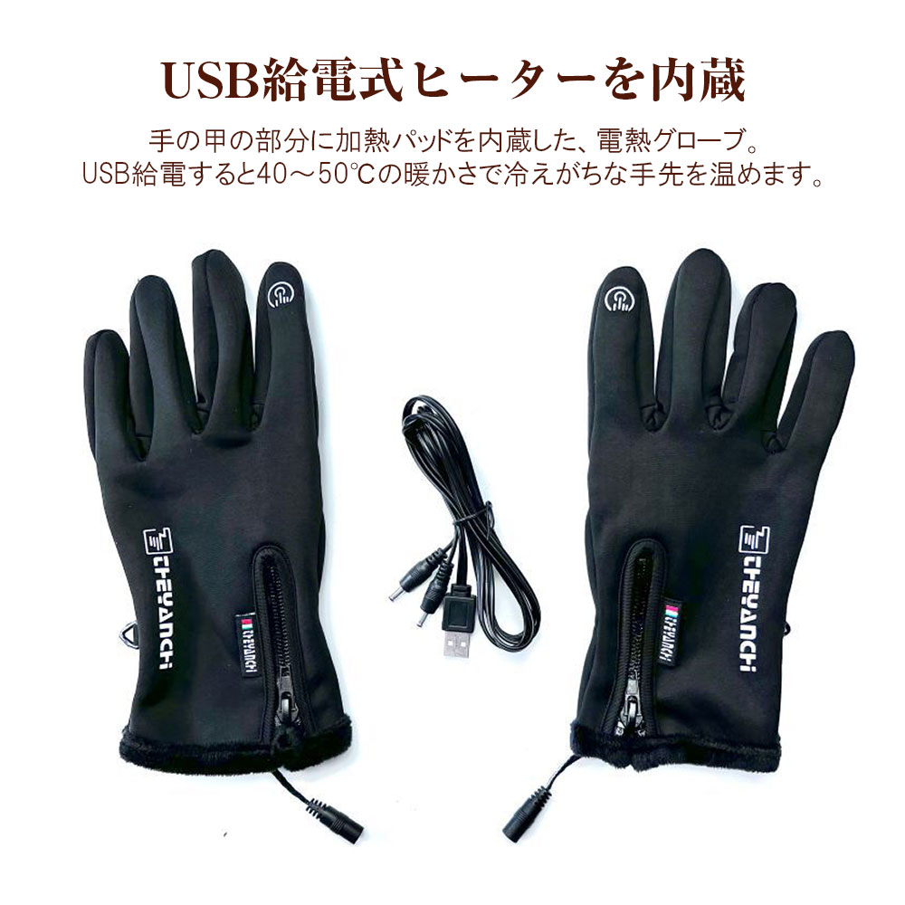 USB 電熱 グローブ USB給電 手袋 防水 撥水 電気手袋 スマホ操作可 指出し バイク用品 ◇ALW-XL-DY802 | 手袋ヒーター 電熱グローブ スマホ対応 バイクグローブ 冬 滑り止め