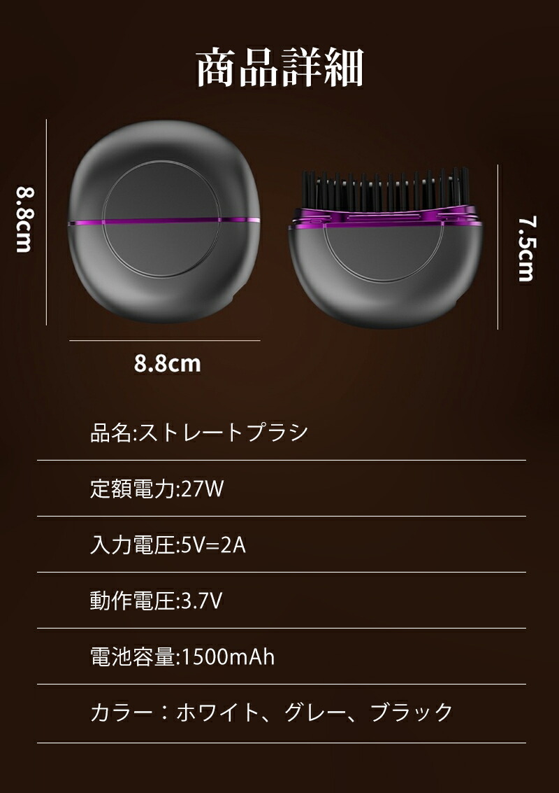 ストレートブラシ 40秒速熱 ヘアアイ ブラック ホワイト グレー