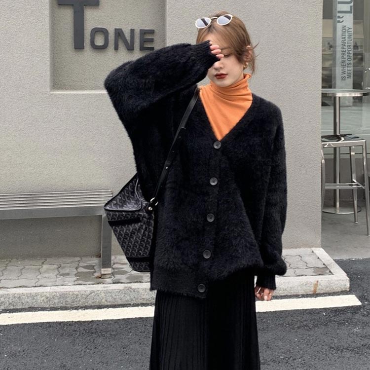 シャギーニットカーディガン カーデ シ トップス カーディガン ボレロ 続々入荷中 ブラック ベージュ グレー
