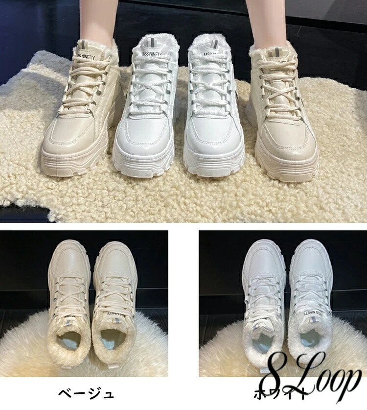厚底スニーカー レディース スノーブー レディース靴 スニーカー 人気 ホワイト ベージュ 22.5cm 23.0cm 23.5cm 24.0cm 24.5cm 25.0cm