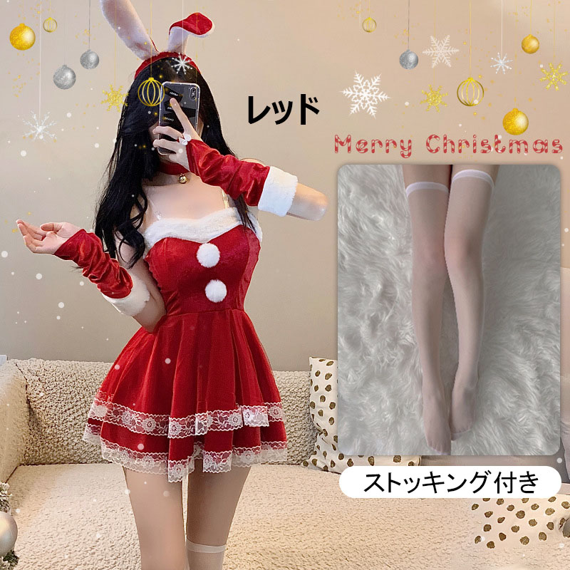 豪華6点セット サンタ コスプレ セク コスプレ 変装 仮装 コスチューム一式 超目玉商品 レッド ピンク グリーン ブラック M L