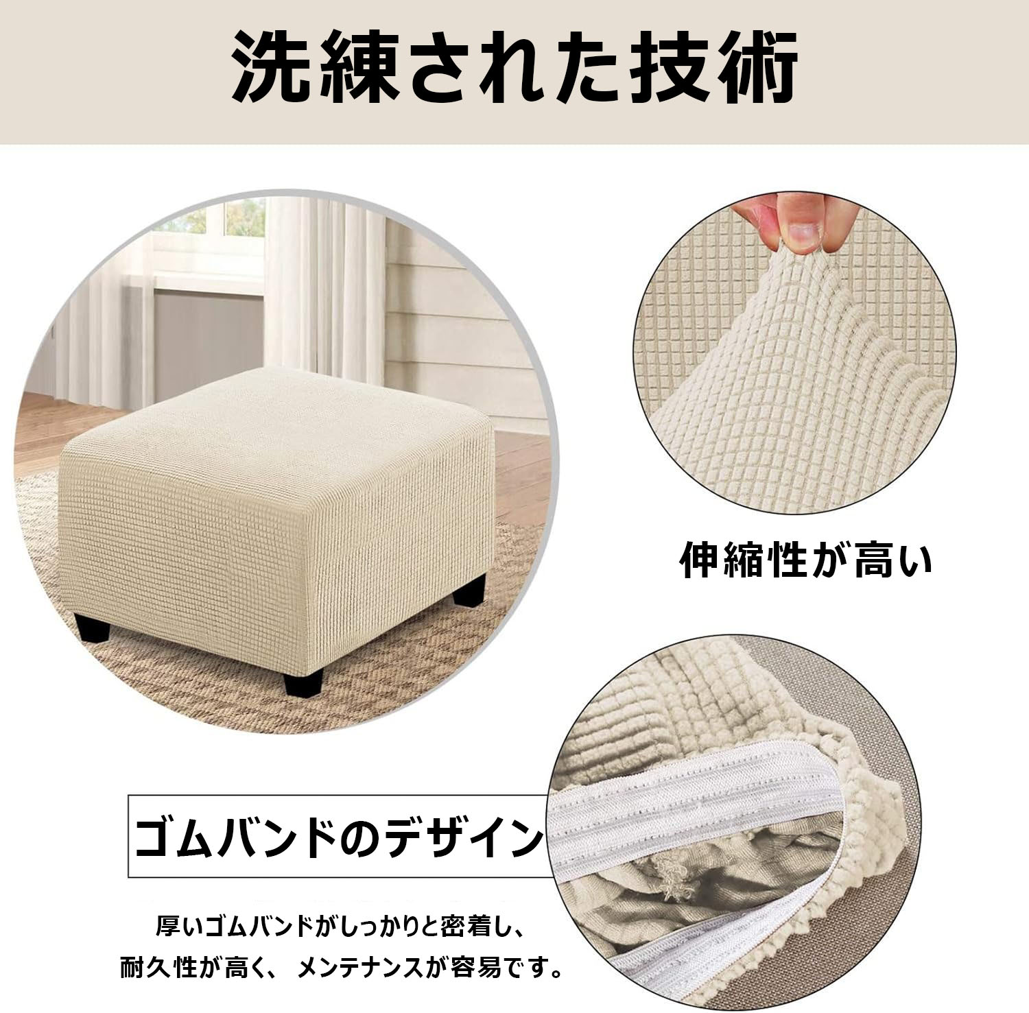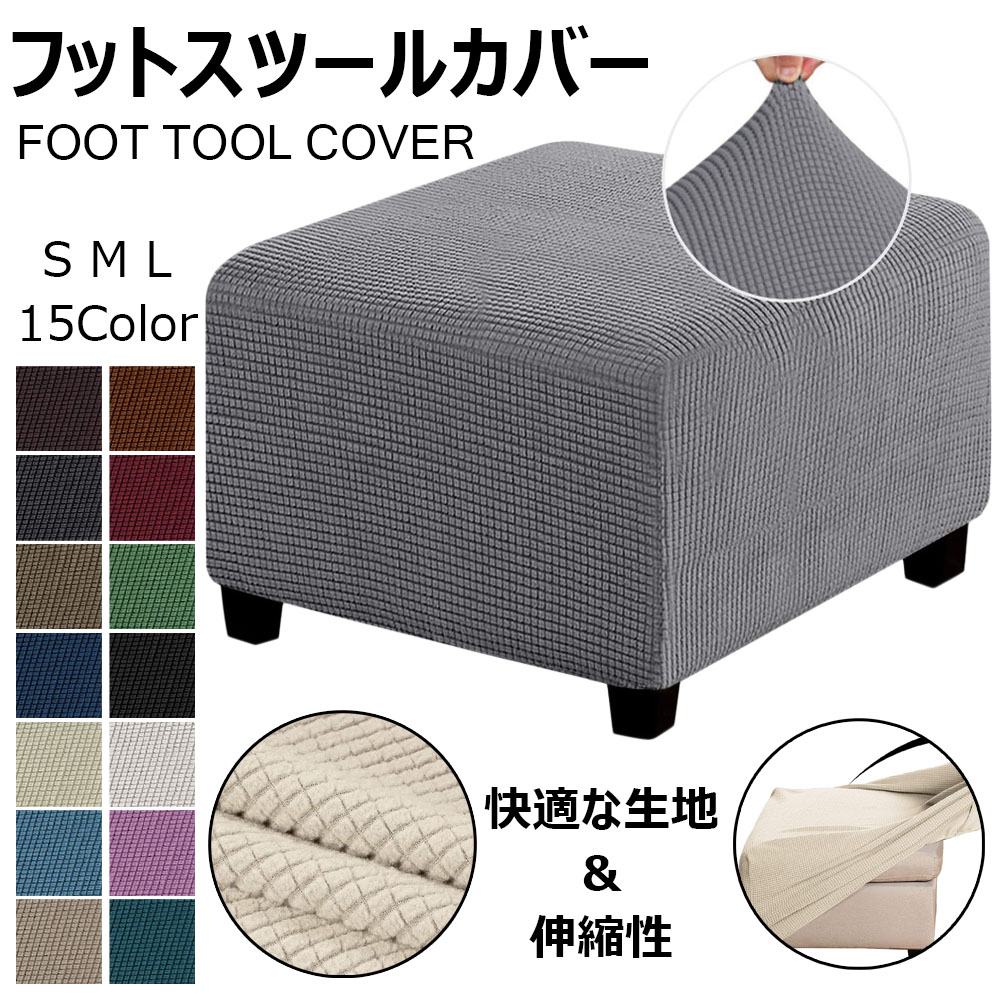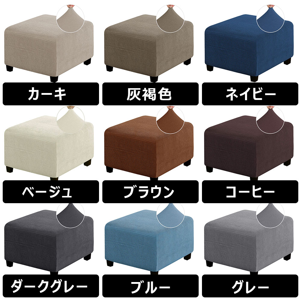 オットマンカバー 伸縮 スツールカバー カーキ 灰褐色 ネイビー ベージュ ブラウン コーヒー ダークグレー ブルー グレー レッド グリーン ブラック ホワイト パープル ダークグリーン S M L