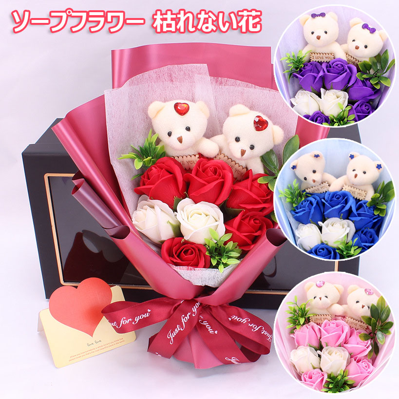 ソープフラワー 枯れない花 バレンタイ ピンク レッド ブルー パープル