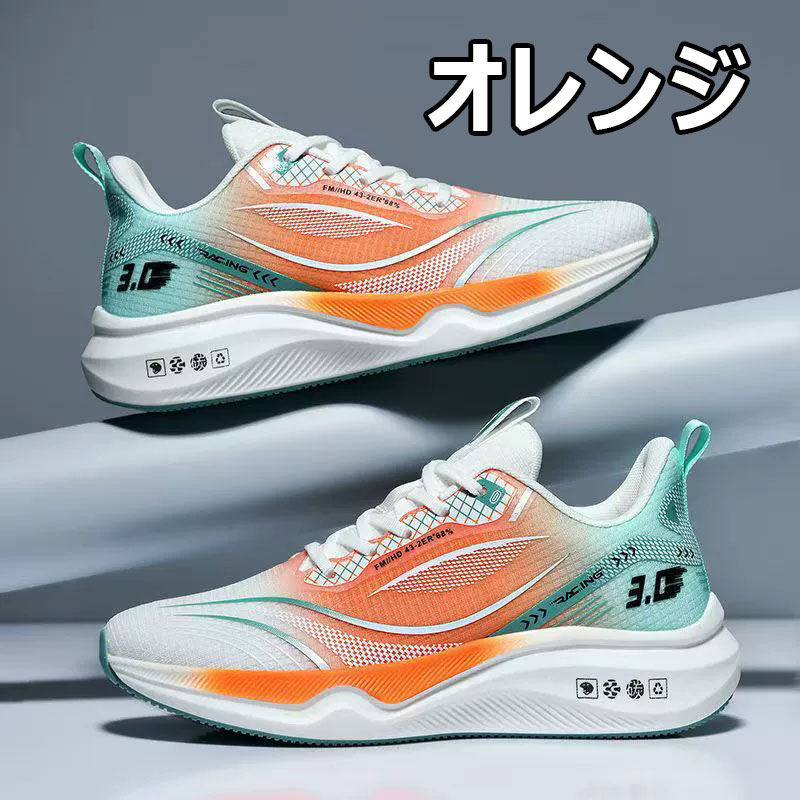 スニーカー メンズシューズ 軽量 ウォ スポーツ アウトドア 新作 ブラック ブルー オレンジ 39(24.5cm) 40(25cm) 41(25.5cm) 42(26cm) 43(26.5cm) 44(27cm)