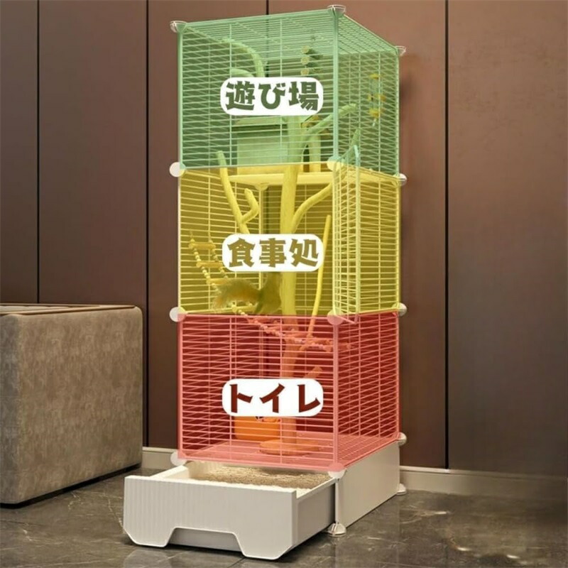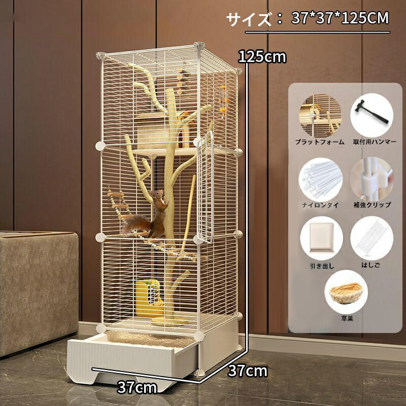 リスケージ 3段 37*37*125cm 大型、引き出し トレイ フクロモモンガ シマリス デグー フェレット 大型 垂直 金網 小動物ケージ