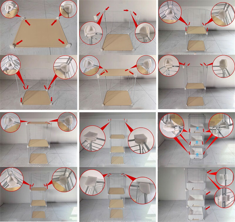 棚アミとハシゴが付きの3階建て。取り外せるロフトでお部屋を3つに分かれてスロープで移動。金網ケージで、別売りのステージ足場などお好きな物を自由にレイアウト。