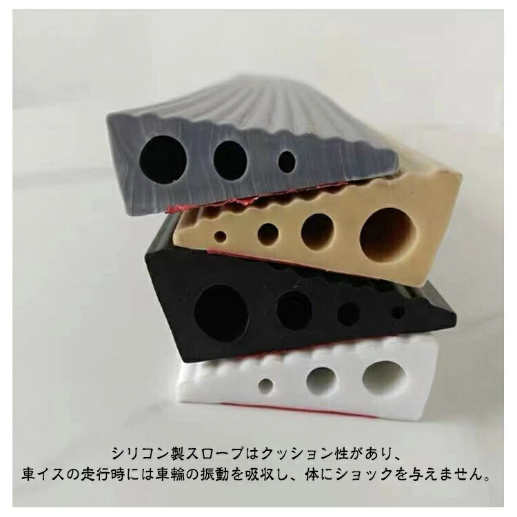 段差解消スロープ 室内用 シリコン製 ブラック(幅80cm) グレー(幅80cm) ホワイト(幅80cm) アイボリー(幅80cm) 高さ0.6cm(中実/幅2cm) 高さ1cm(中実/幅1.5cm) 高さ1.6cm(中実/幅5.5cm) 高さ2cm幅6cm(穴付き) 高さ2.5cm幅9.5cm(穴付き) 高さ3cm幅10.5cm(穴付き)