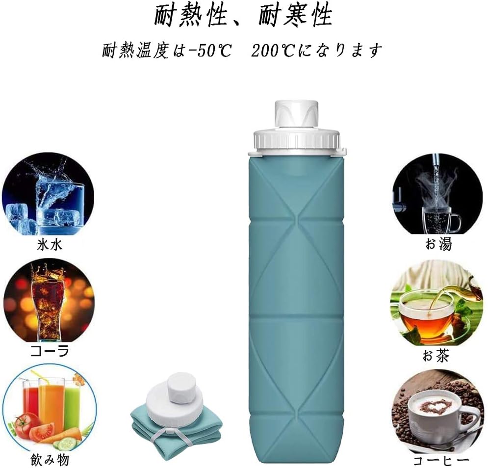 【健康・安全素材】この折りたたみ水筒は環境にも体にも優しい食品グレードのシリコン素材+ PPを採用しており、無毒無害で、子供でも安心して使えます、赤ちゃんにどうに噛まれても安全で、品質と耐久性に優れています。丈夫で柔軟性に優れているので、落下の衝撃で変形したり、傷ついて壊れたりしにくいです。注:一部の製品は開封時にゴム臭がしますが、これは正常であり、今後の使用過程で徐々に消えていきますので、ご安心してお買い求めください。
