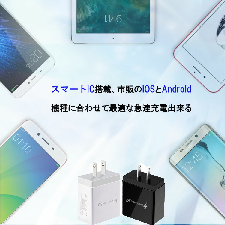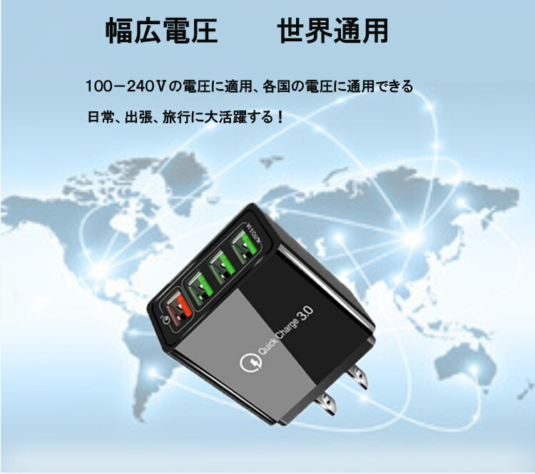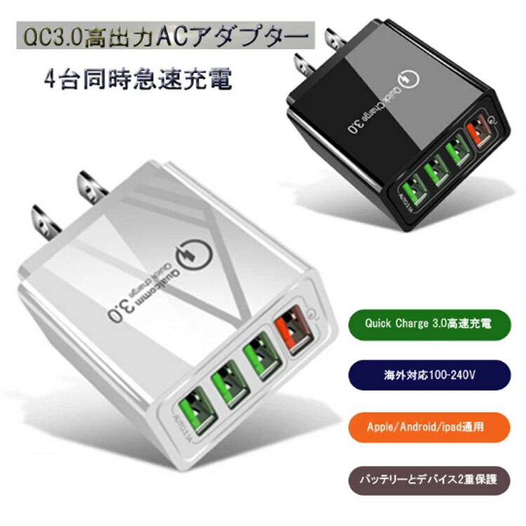ACアダプター チャージャー USB4 スマートフォン タブレット 続々入荷中 ホワイト ブラック 1点 2点セット
