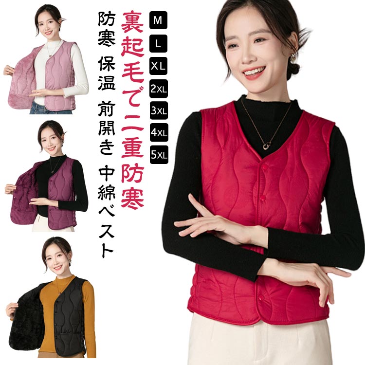 前開き 裏起毛 ベスト 中綿 Vネック レディースファッション 豊富 ホワイト ブラック レッド ピンク パープル モカ ライトピンク M L XL 2XL 3XL 4XL 5XL