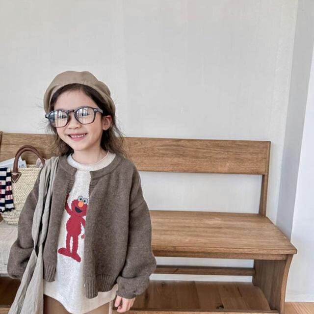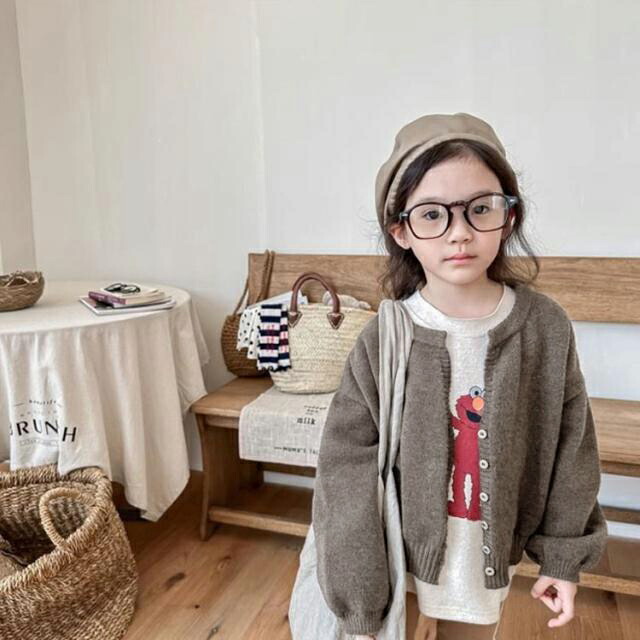 羽織り 体温調整 秋 Vネック カーデ キッズ ベビー マタニティ 通販 ベージュ ダークブラウン 100 110 120 130 140