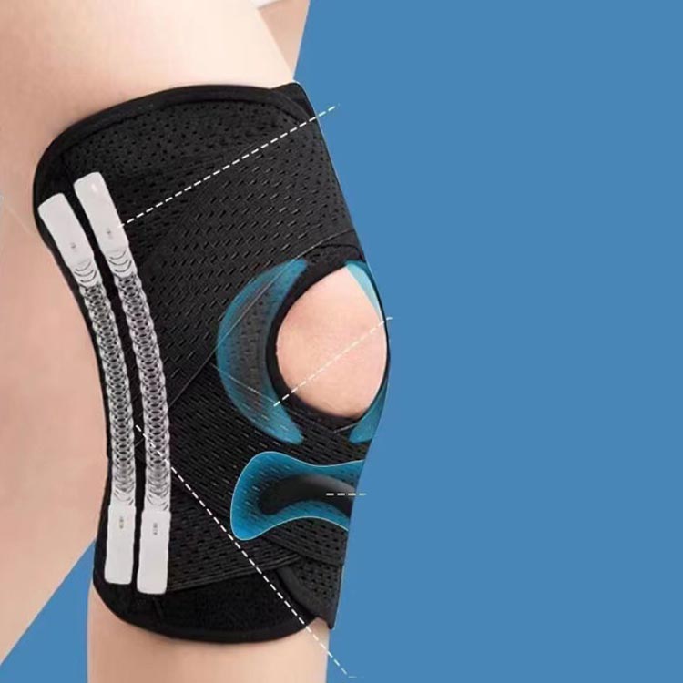 膝サポーターの両側に2本ずつのスプリングを内蔵し、関節の自然な動きとともに流れるように設計されており、運動や激しい活動時に着用するのに理想的なブレースです。