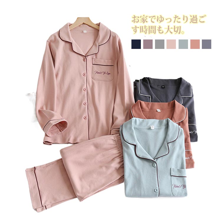 贈り物 ペアルック カップル ペアパジャマ レディース 長ズボン 無地パジャマ ルームウェア 紳士 メンズ 長袖パジャマ 綿100% 長袖 部屋着 前開き プレゼン 春夏秋冬