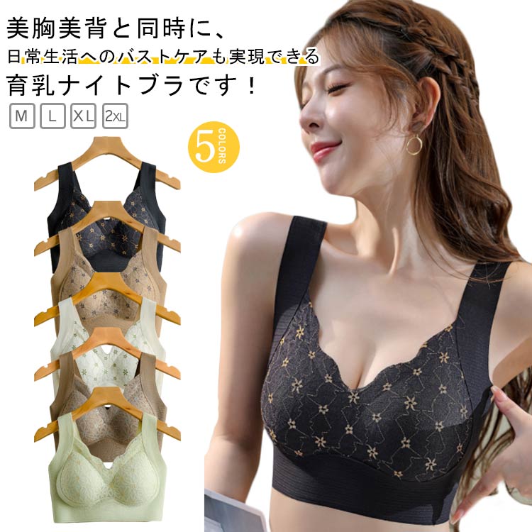 ナイトブラ 育乳ブラ ブラジャー 昼夜 インナー 下着 ナイトウエア 人気 ブラック オフホワイト モカ コーヒー グリーン M L XL 2XL