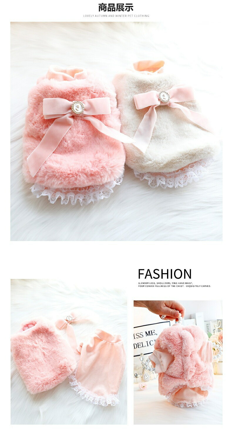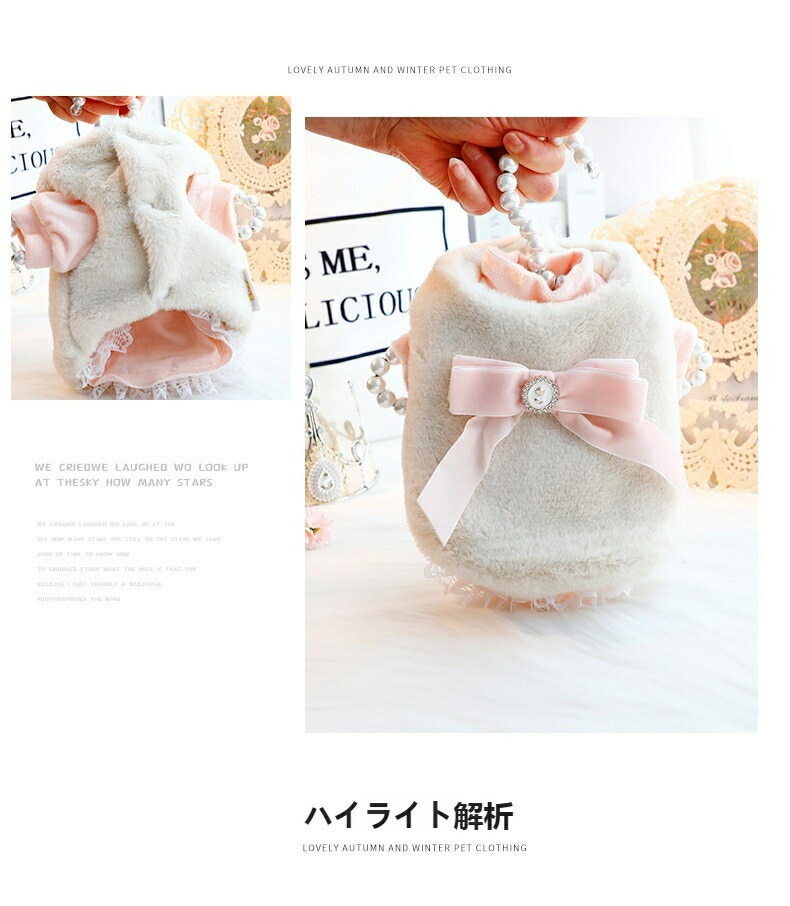 犬服 秋冬 可愛い 犬洋服 ドックウェア コートふわふわ 柔らかい おしゃれ 暖かい ファッション ペットウェア 防寒 保温 お散歩 ピンク ホワイト 小中型犬