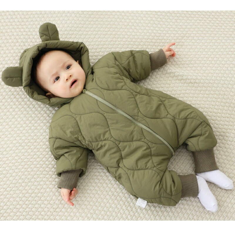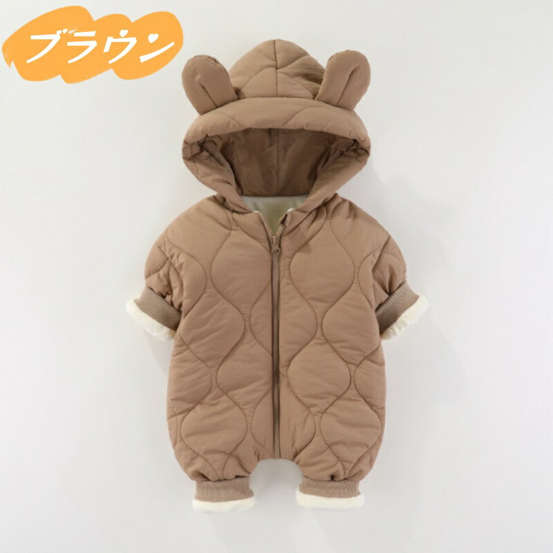 ジャンプスーツ ベビー服 中綿入り ロンパース カバーオール 新生児 赤ちゃん ぬいぐるみ 裏起毛 防寒 子供服 フード付き 男児 女児 男の子 女の子 可愛い ファスナー カバオール 冬服 雪遊び