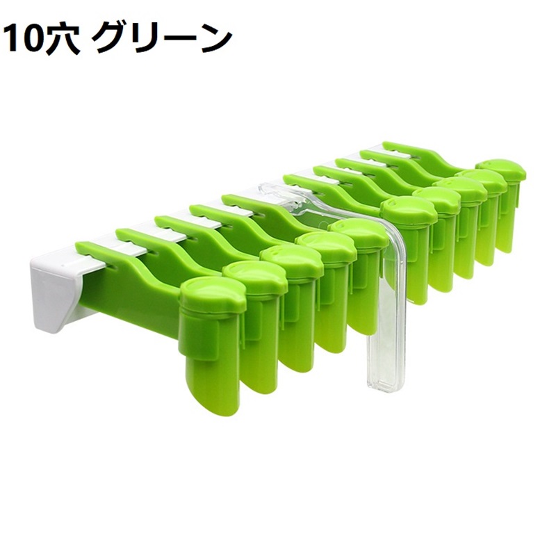 調味料ラック 袋止めクリップ キッチン キッチン整理用品 整理ボックス 早い者勝ち 6穴 10穴 透明 グリーン