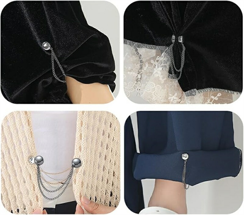 マグネット多用途服飾クリップ 衣類クリップ 4個セット 衣類ピン マグネットバックル 位置固定 ウエスト調整ボタン チェーン付き マグネットピン 強力磁石 調整可能 裾チェーン 裾上げ