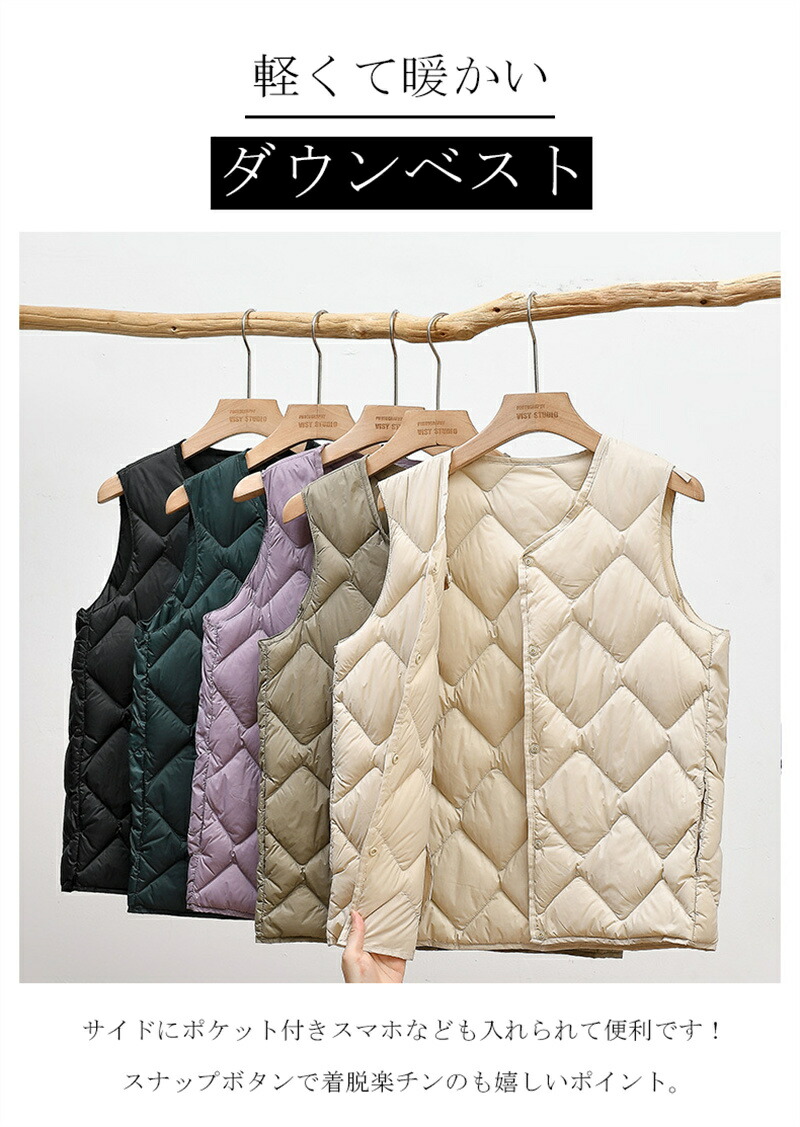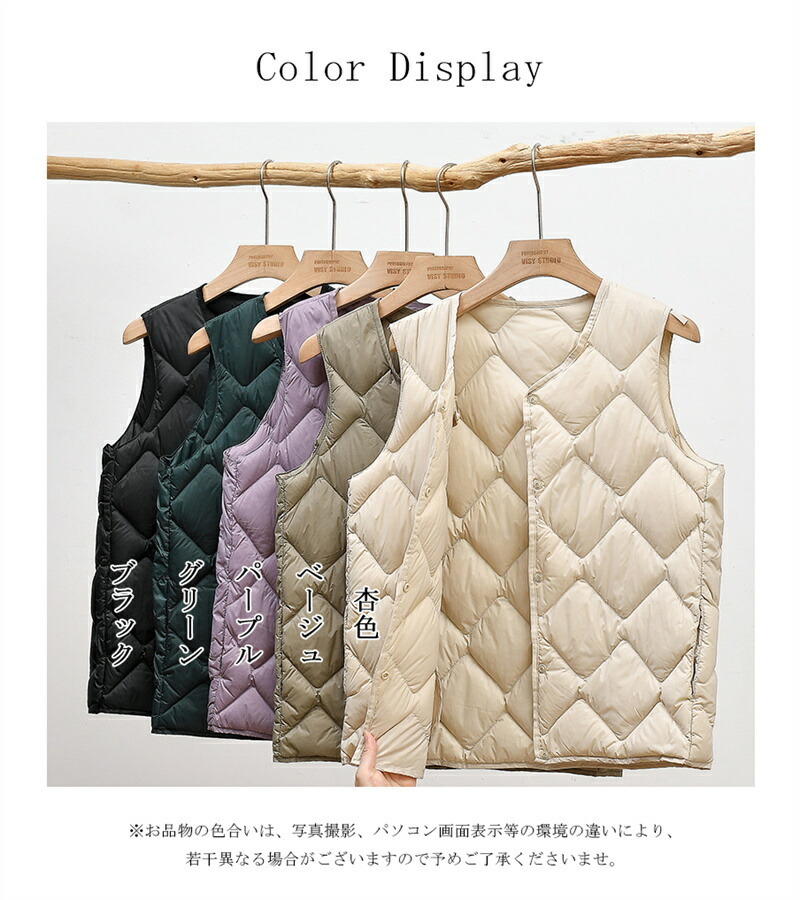 ダウンベスト アウター ジレ あったか レディースファッション 豊富 杏色 ベージュ グリーン パープル ブラック L XL 2XL 3XL 4XL