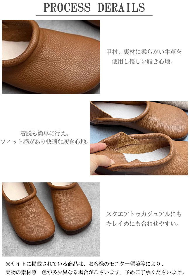 フラットシューズ 牛革 スリッポン ス 靴 続々登場 ブラウン ブラック 35 36 37 38 39 40