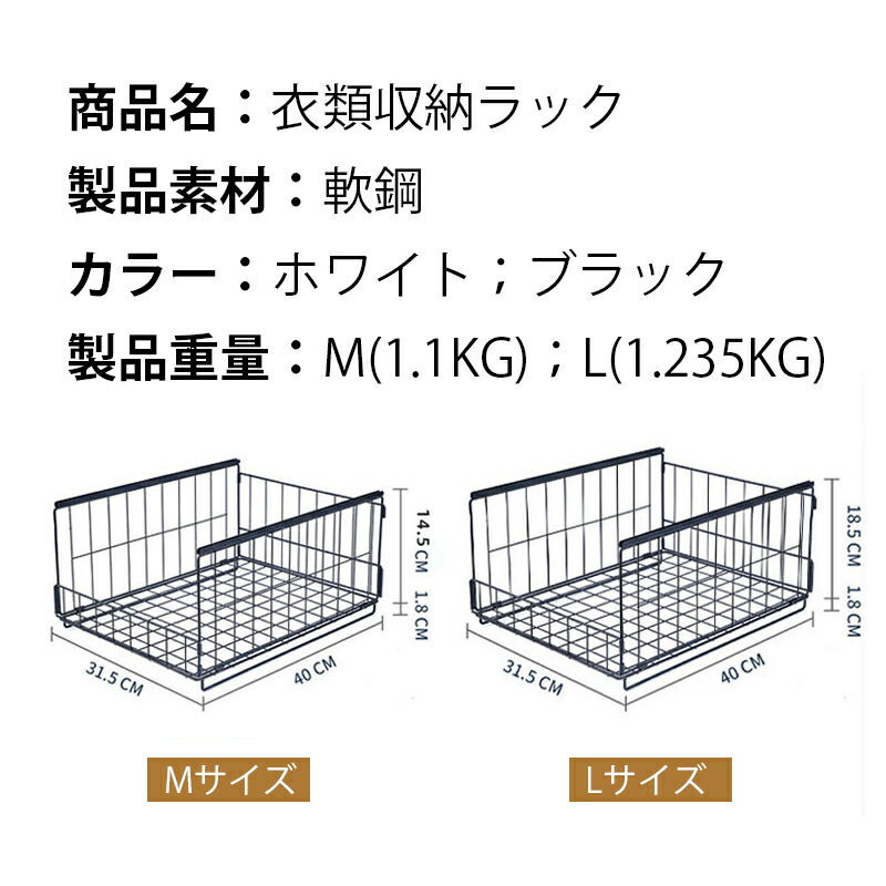 ラック 衣類収納 クローゼット 折りた ホワイト ブラック M L