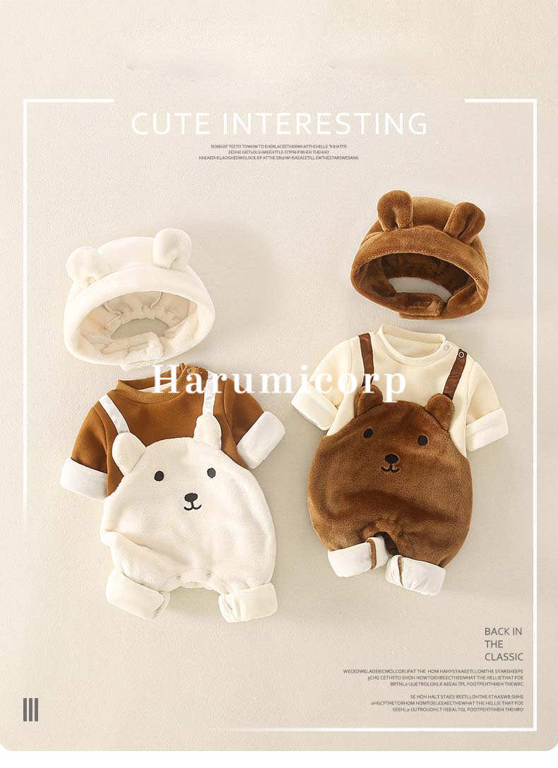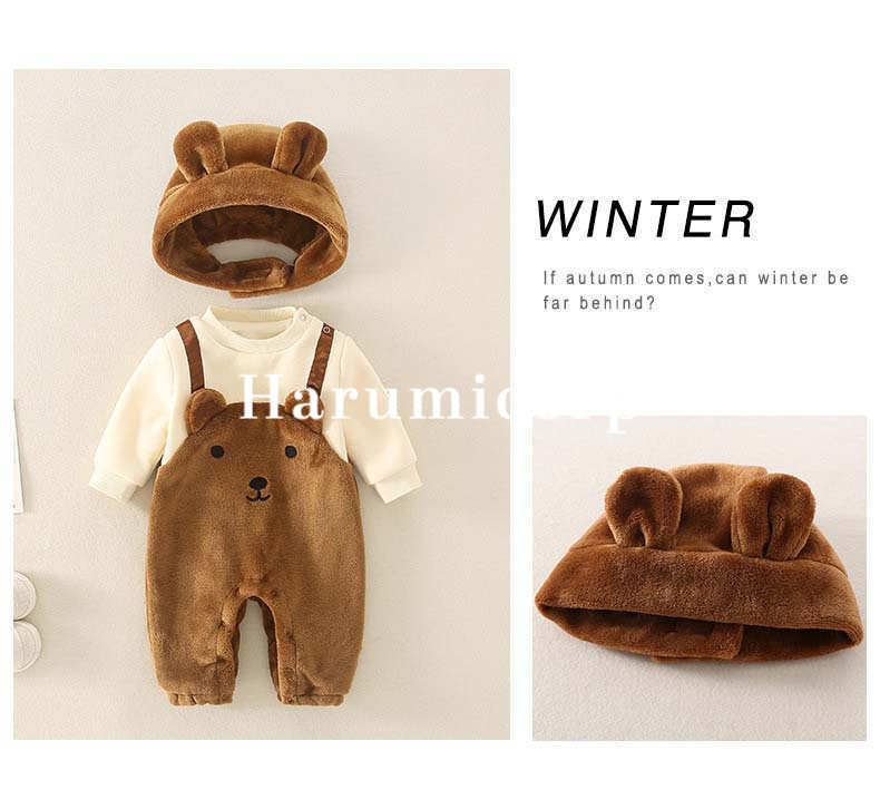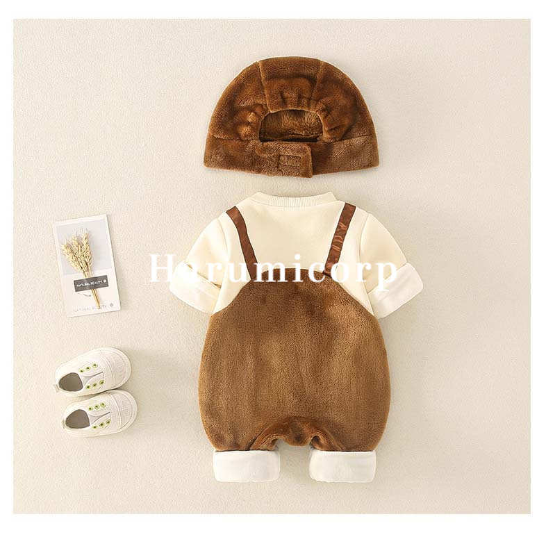 ロンパース 帽子付き 秋冬 ベビー服 ベビー ベビー服 ファッション カバーオール ロンパース 人気 ブラウン オフホワイト 66cm 73cm 80cm 90cm