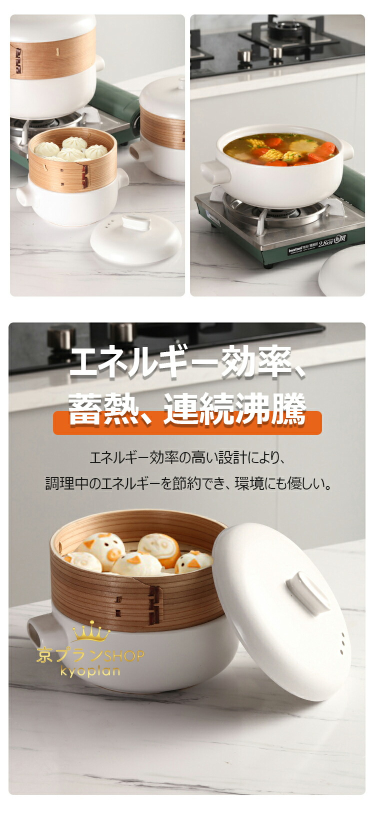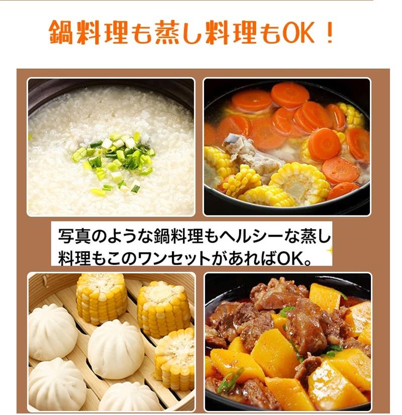 【上段で蒸し、下段で煮込み、より多くの食材を解き放つ】 ユニークな蒸し器デザインにより、調理中に複数の食材を同時に蒸すことができ、時間の節約になるだけでなく、食卓をより華やかにします。 お粥でも、スープでも、肉まんでも、煮込み料理でも、このキャセロールなら簡単にこなせます。
