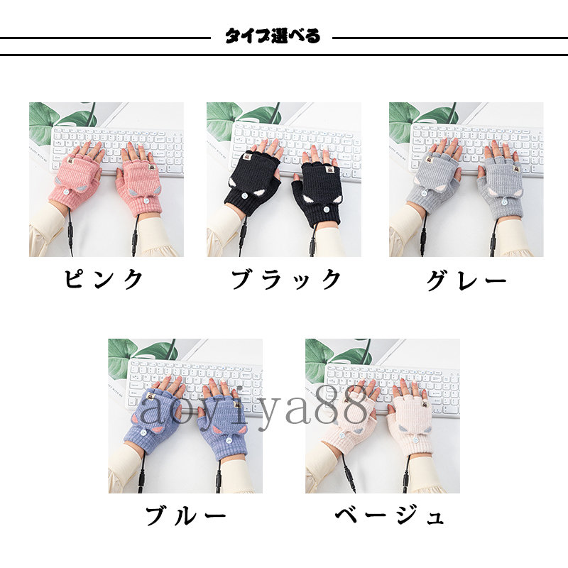 手袋 女性 USB加熱 ヒーター 発熱 バッグ 小物 ブランド雑貨 通販 ピンク ブラック グレー ブルー ベージュ