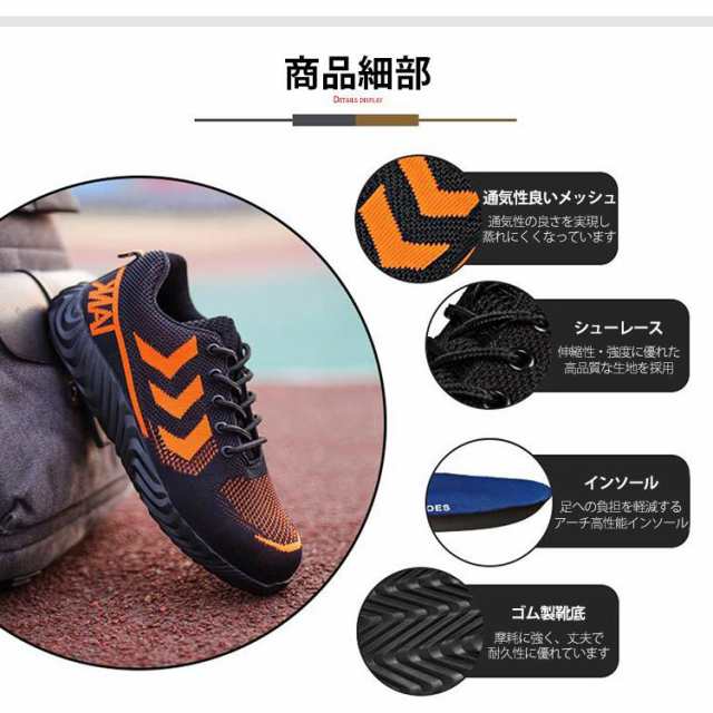 安全靴 ワークブーツ 作業靴 滑らない ブラック ブルー オレンジ 23.0cm(36) 23.5cm(37) 24.0cm(38) 24.5cm(39) 25.0cm(40) 25.5cm(41) 26.0cm(42) 26.5cm(43) 27.0cm(44) 27.5cm(45) 28cm(46)
