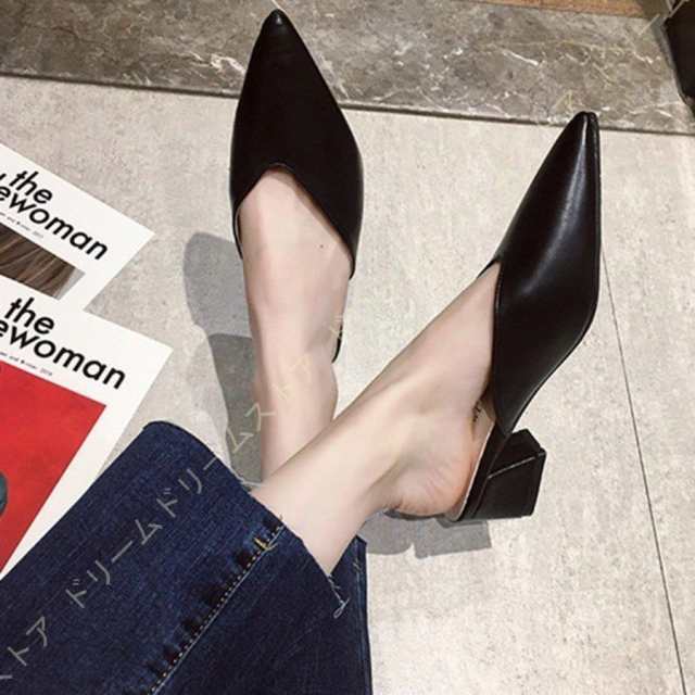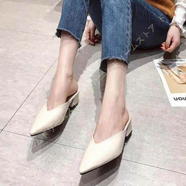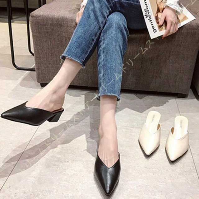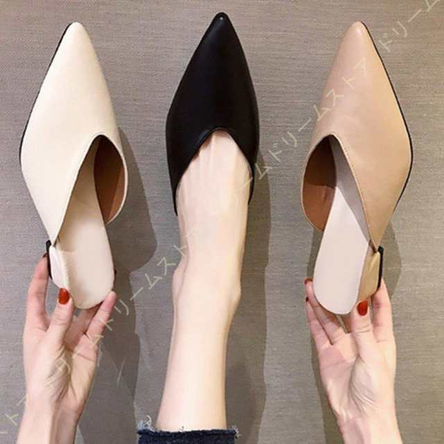 ミュール サンダル ポインテッドトゥ 靴 新登場! ブラック アプリコット ベージュ 22.5cm 23.0cm 23.5cm 24.0cm 24.5cm 25.0cm