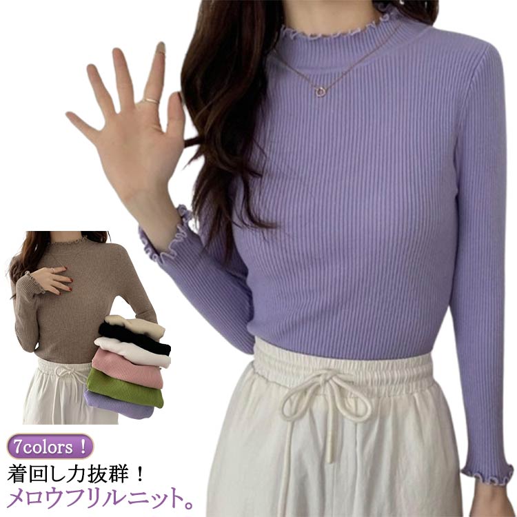 トップス ニット ハイネック フリル トップス ニット セーター セーター 早い者勝ち ホワイト コーヒー パープル グリーン ブラック ピンク ベージュ
