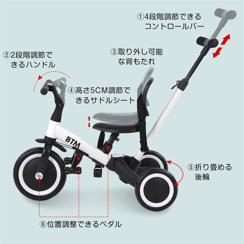 子供用三輪車 5in1 4WAY 押し棒付き ランニングバイク 1歳 2歳 3歳 4歳 5歳 自転車 おもちゃ 乗用玩具 幼児用 軽量 可愛い キッズバイク こどもの日 クリスマス プレゼン お誕生日
