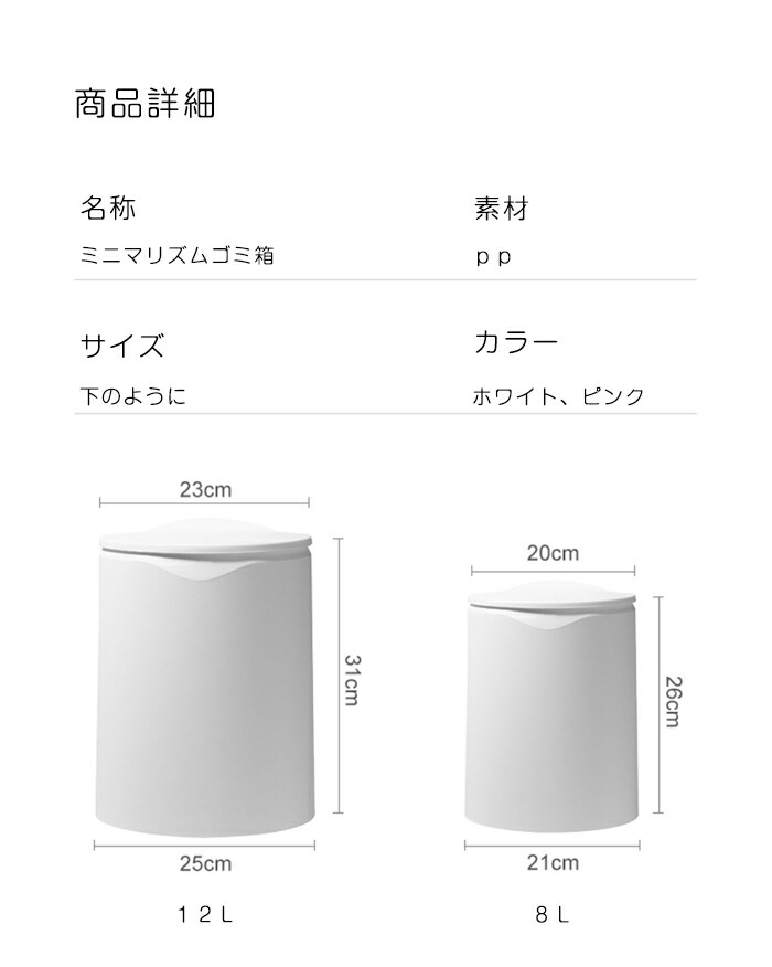 ゴミ箱 おしゃれ ふた付きワンタッチ ピンク ホワイト 8L 12L