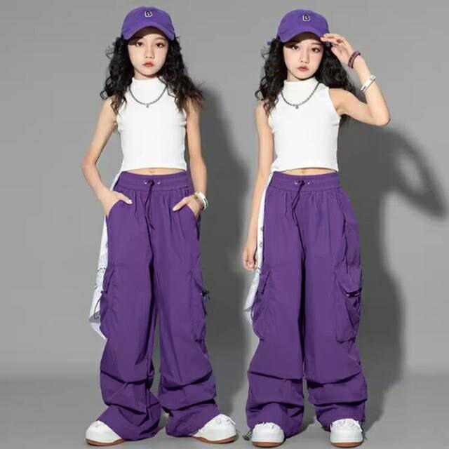 カーゴパンツ ダンスパンツ キッズ 子 キッズ ボトムス パンツ 早い者勝ち グリーン パープル ブラック ワイン ホワイト ピンク 110 120 130 140 150 160 170 180