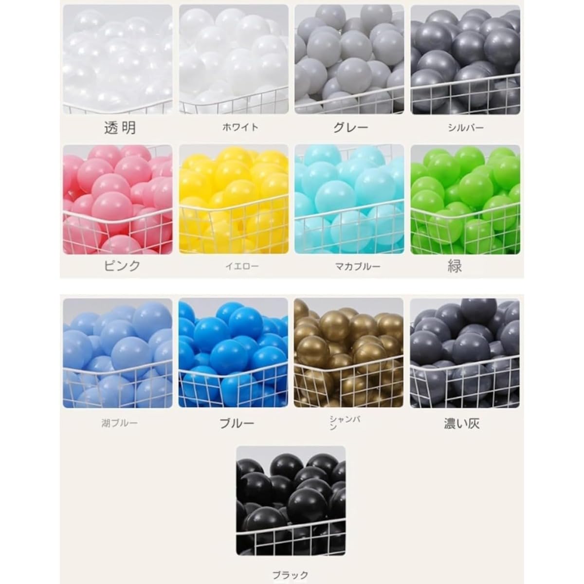 100個 おもちゃボール カラーボール 7色 とうめいしょく イエロー オレンジ グリーン グレー ダークグレー パープル ピンク ブラック ブルー ホワイト マカロン マカロングリーン マカロンブルー レッド 5.5cm 7cm 8cm