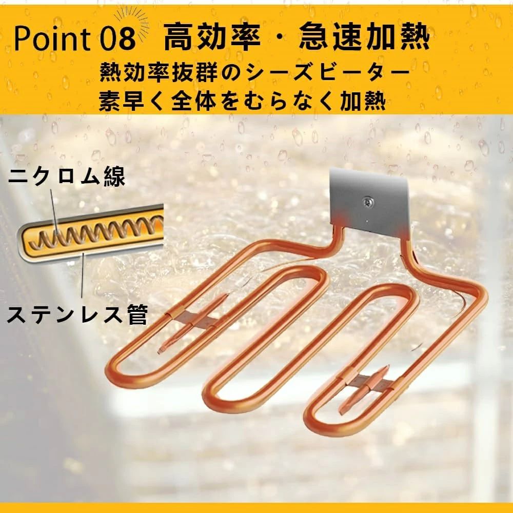 お手入れが簡単:取り外し可能な蓋、フライヤー、バスケットと外殻は食器洗い機に入れて洗浄出来ます。加熱部品を取り外して水に入れて洗浄出来ますが、食器洗い機には絶対に入れないでください。電気装置を水で濡れてはいけません。