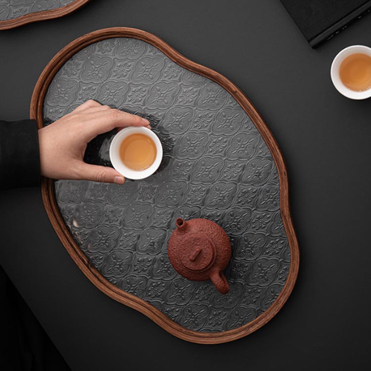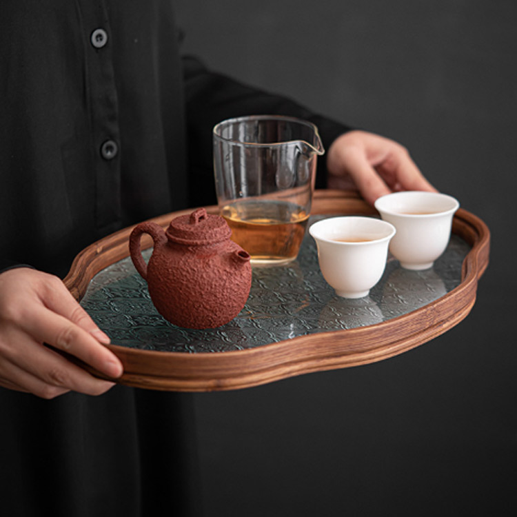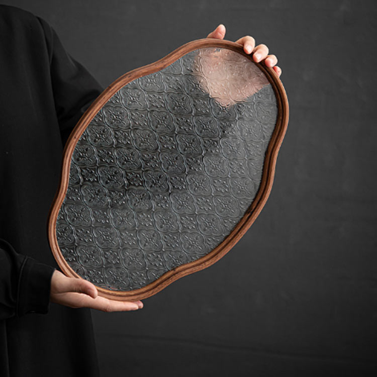 花海棠トレー ガラス トレイ カフェト キッチン用品 食器 調理器具 豊富 透明ガラス グリーンガラス 小(29*20.5*2.2cm) 大(32.5*25.5*2.2cm)