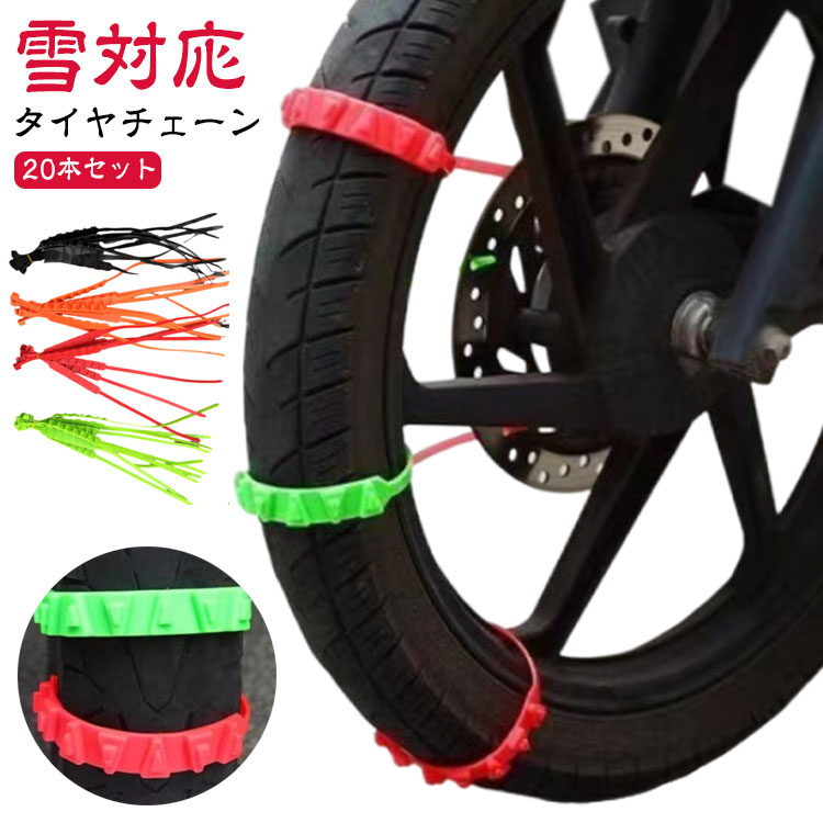 20本セット バイク タイヤチェーン レッド グリーン ブラック オレンジ