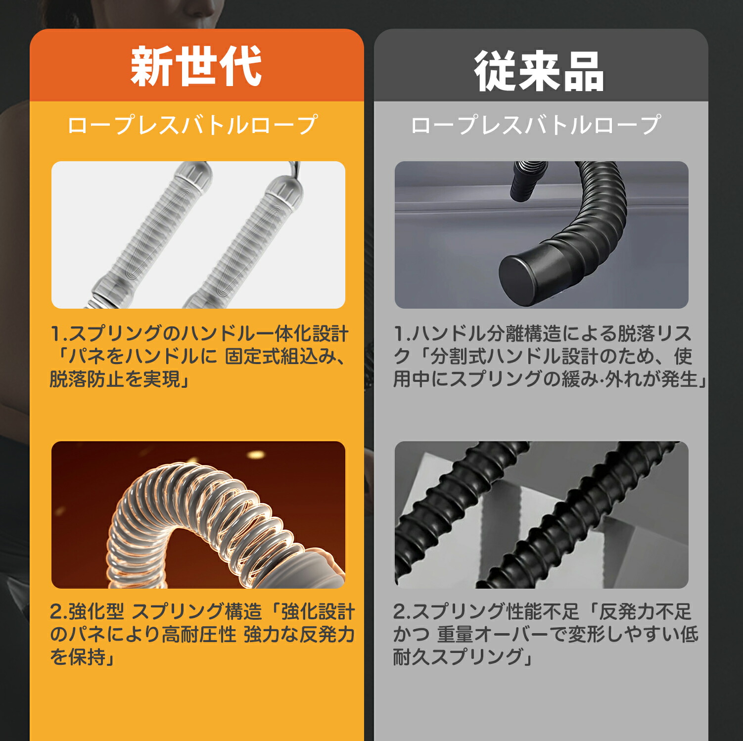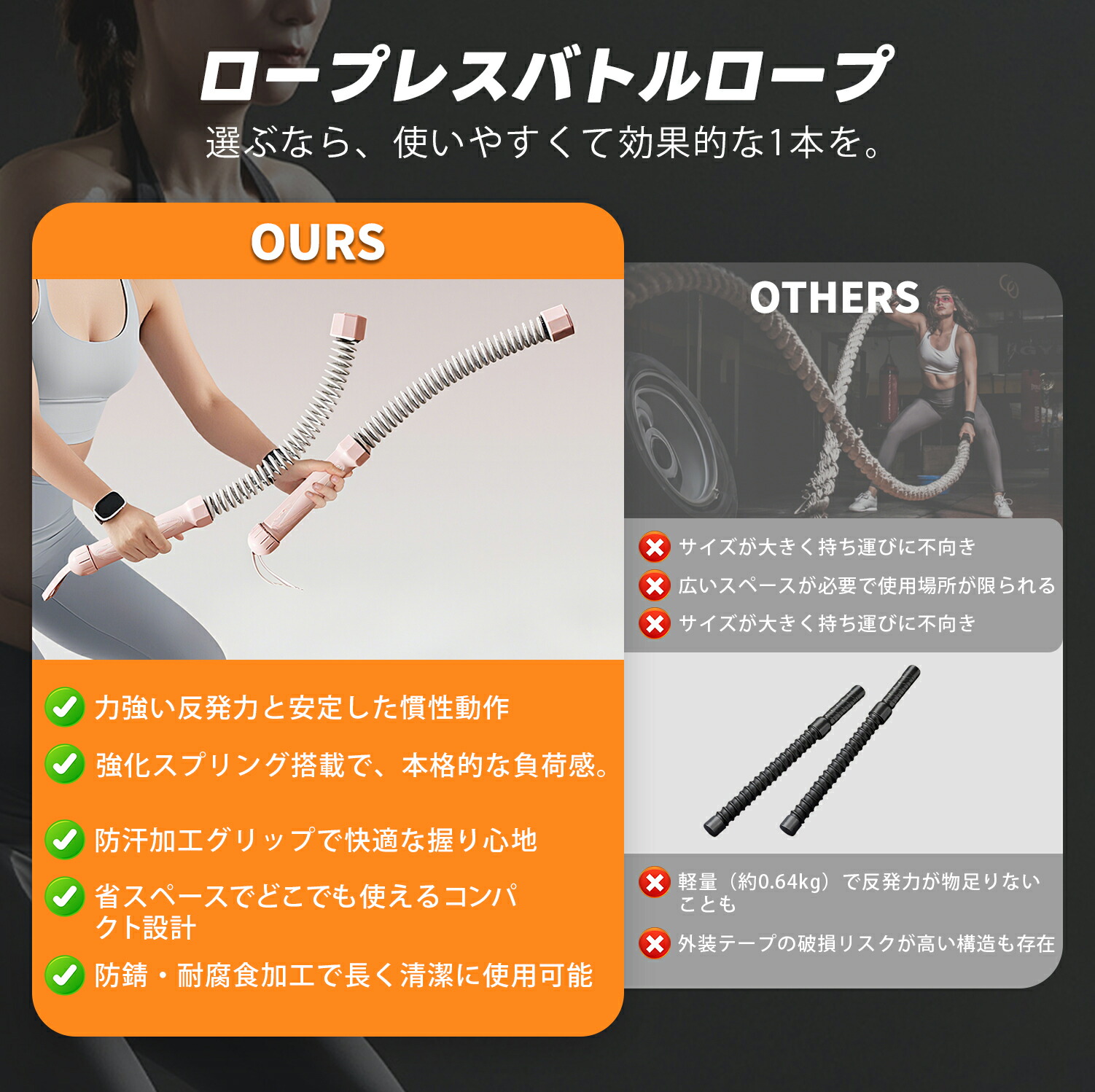 コードレス バトルロープ 携帯型コード ピンク ブラック グレー
