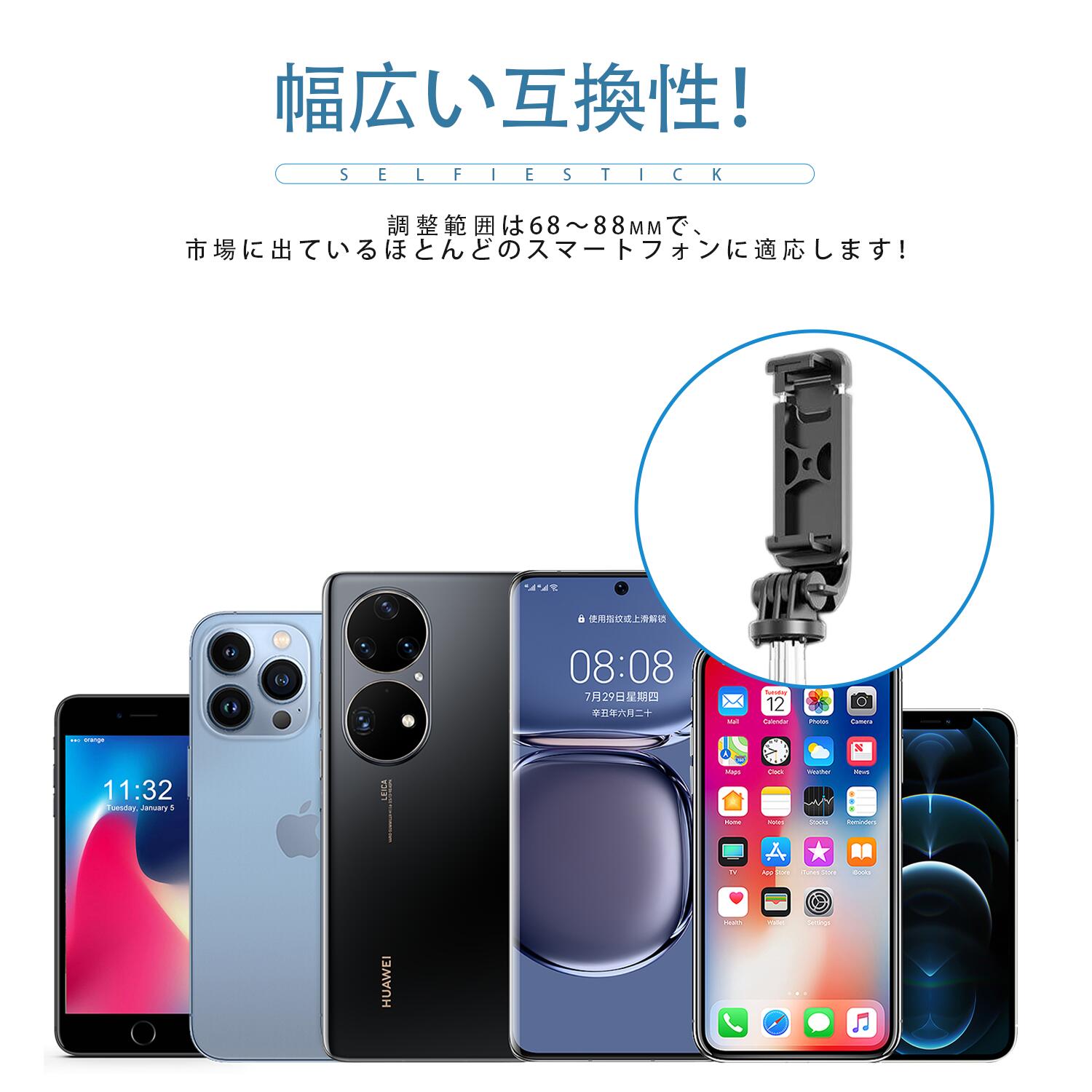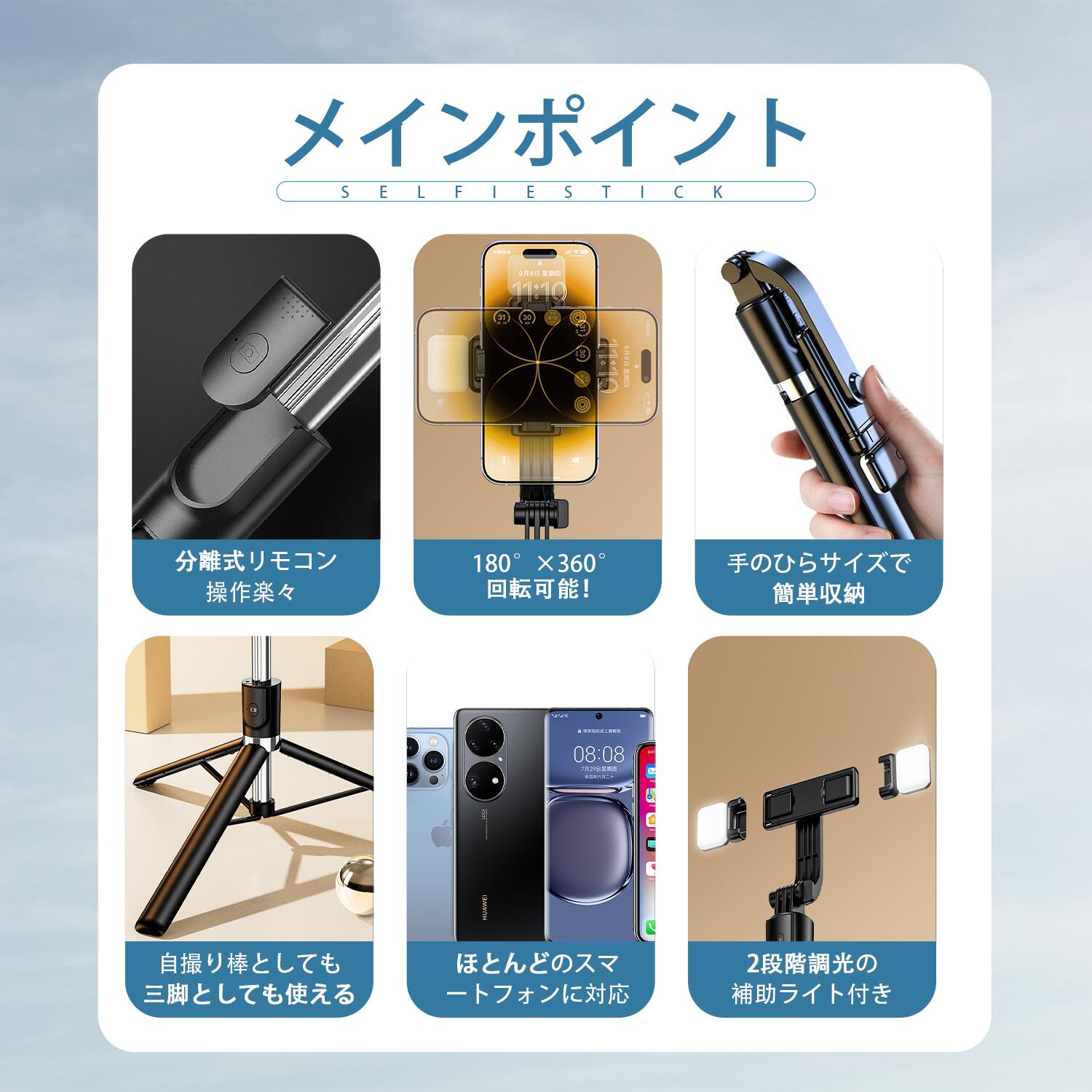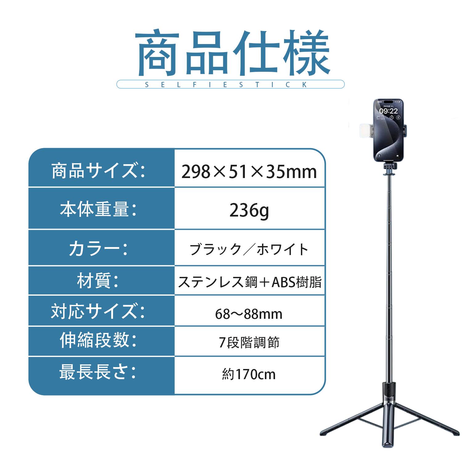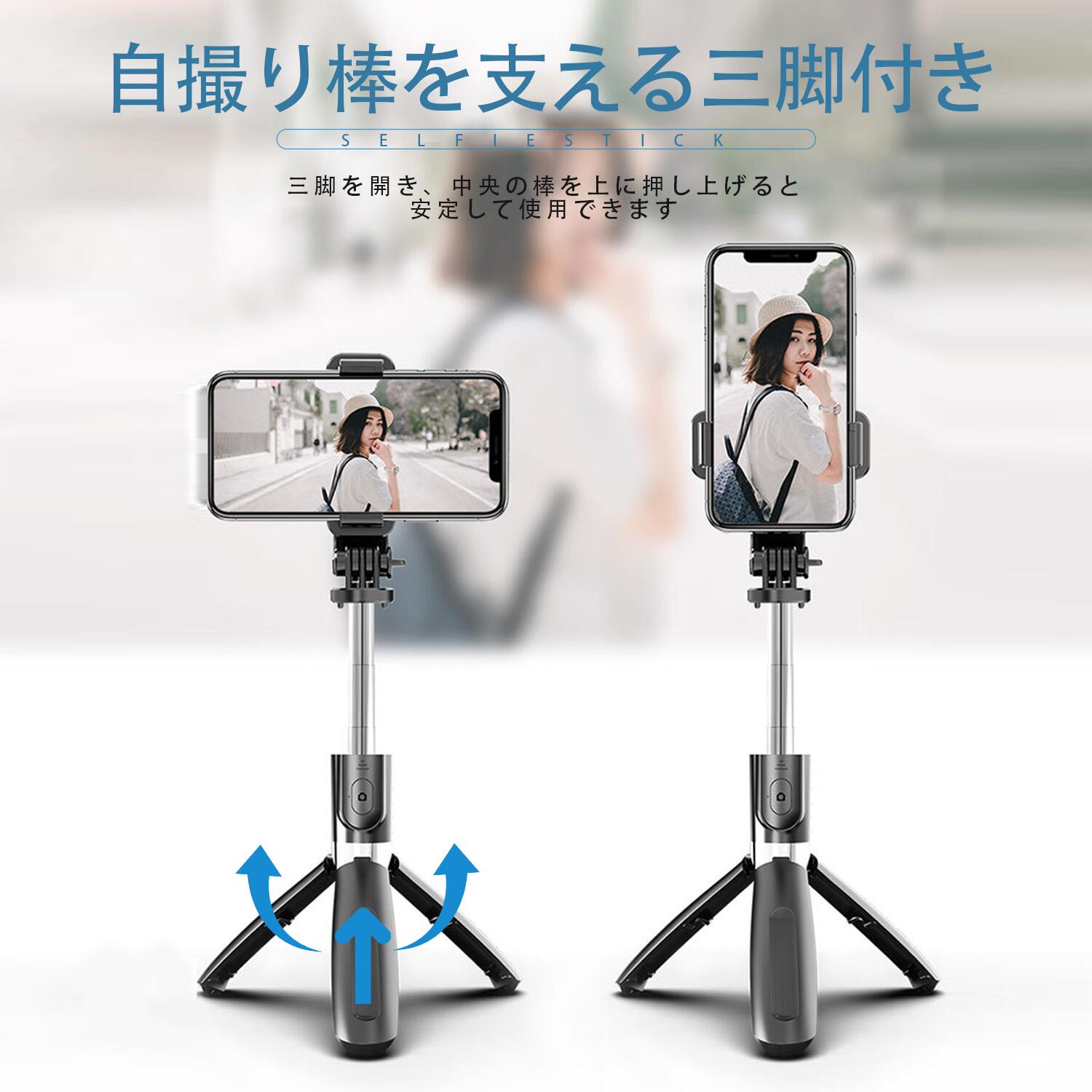 自撮り棒 Bluetooth 三脚付き スマートフォン 携帯電話用アクセサリー セルカ棒 特集 ブラック ホワイト