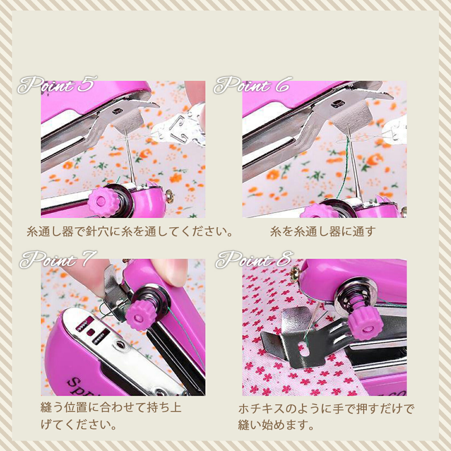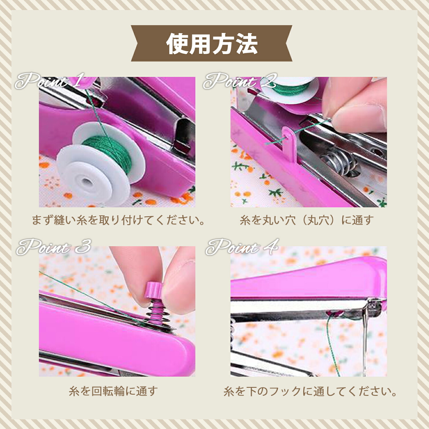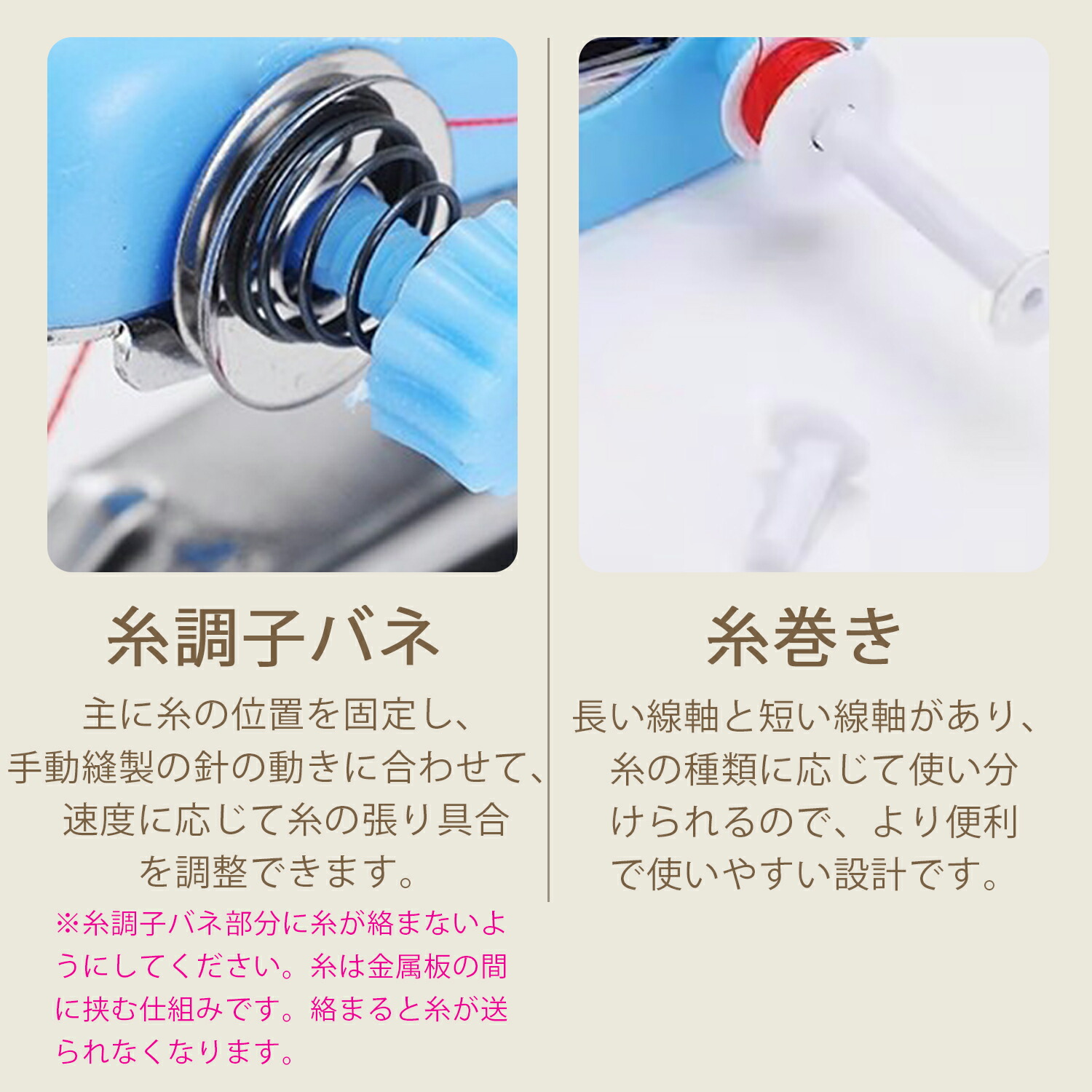 ミニミシン ハンドミシン 手動式 コン ホワイト ボルドー ブルー
