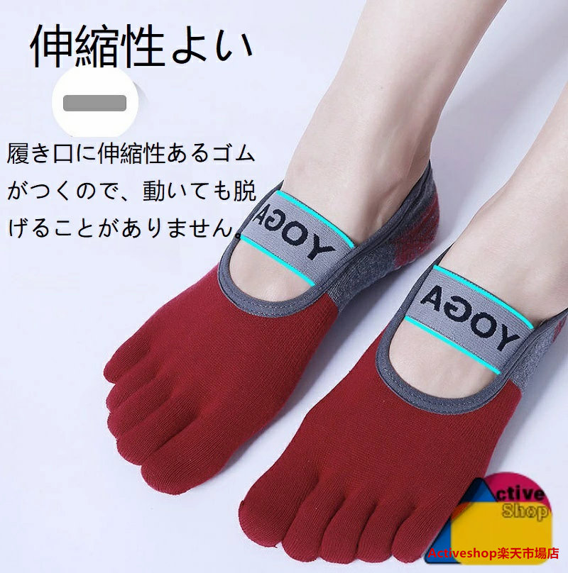 ピラティス 靴下 レディース ヨガソッ ブラック グレー グリーン パープル レッド ブルー