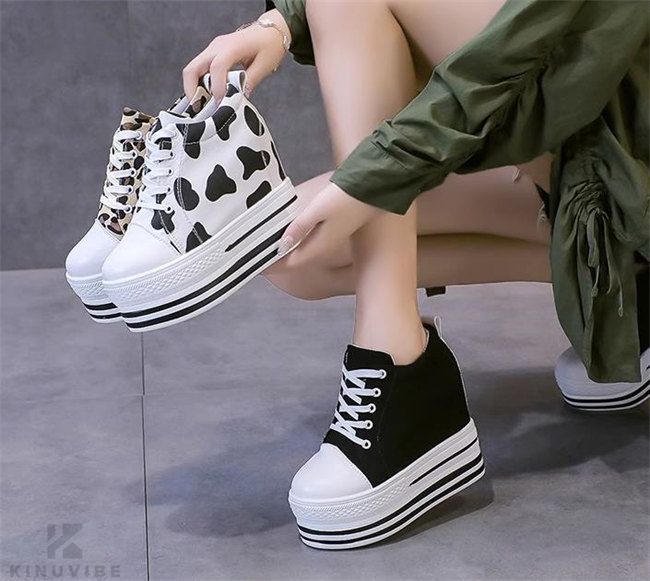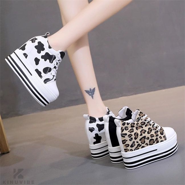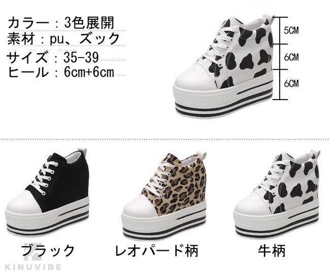3色入荷 レディーススニーカー ハイヒ 靴 通販 ブラック レオパード柄 牛柄 34 35 36 37 38 39