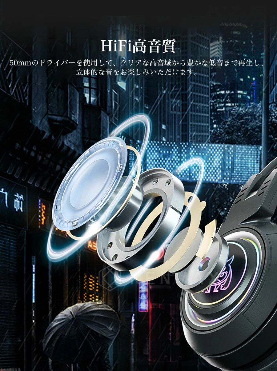 50mmのドライバーを使用して、クリアな高音域から豊かな低音まで再生し、立体的な音をお楽しみいただけます。